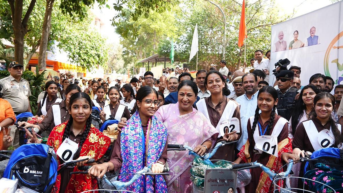 Speaking to the media, Delhi CM said, "Every daughter in Delhi can complete her education without any hindrance, complete her schooling, graduate, and become what she wants to be. The government will work to remove all obstacles in her way. Many daughters often faced difficulties travelling from school to home and back. Through this Vidyavahini, I will provide bicycles to every girl in the ninth grade so that she can travel to and from school throughout her ninth, tenth, eleventh, and twelfth school years...This is the form of Durga, this is the form of Saraswati."